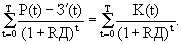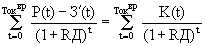 где Р(t) - стоимостная оценка внедрения новой техники за период t; З(t) - стоимостная оценка затрат на внедрение новой техники за период t; RД - норма дисконта имеет разные значения в расчетный период t; t - срок службы, осуществления проекта. Часто не учитывают капиталовложения и исключают их из затрат на внедрение, тогда получим: