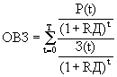 где Nв - номинальная банковская ставка (ЦБ РФ); t - период начисления процентов. В США ежемесячно публикуется индекс потребительских цен, в России также ежемесячно публикуется в «Строительной газете» коэффициент пересчета цен на «сегодня» к уровню цен 1984 года. ОВЗ - критерий, по которому определяется как бы текущая эффективность вариантов, когда принимается во внимание и себестоимость З(t), и эффект от внедрения Р(t):