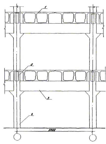 Примечание. Допустимые амплитуды колебания взяты из табл. 15 СН 245-71 для октавной полосы «8». Как видно из табл. 7, амплитуды колебаний коробчатых настилов не превышает допустимых по санитарно-гигиеническим условиям. Проверка прочности коробчатого настила. При расчете конструкций, подвергающихся действию эксплуатационных нагрузок, по первой группе предельных состояний допускается не учитывать динамические нагрузки, если динамические перемещения от расчетных нагрузок за вычетом перемещений опор не превышают 1 / 40000 пролета конструкции. Сумма перемещений коробчатого настила по 1-й форме колебаний составляет: 0,0015372 + 0,002912 + 0,004032 + 0,004452 + 0,004032 + 0,002912 + 0,0015372 = 0,0214144 мм. Увеличивая эту сумму в 1,3 раза (ткацкие станки относятся к машинам с конструктивно неуравновешенными движущимися частями) и отнеся ее к пролету, имеем (0,0214144 · 1,3) / 18000 = 0,000015 < 1/40000. Таким образом, при расчете прочности коробчатого настила достаточно учитывать только статические нагрузки. Сумма перемещений коробчатого настила по 2-й форме колебания, отнесенная к пролету конструкции, равна: (0,002912 + 0,002912 + 0,0015372) · 1,3 / 18000 = 0,0000005 < 1/40000, т.е. прочность коробчатого настила обеспечена. Расчет коробчатого настила на огневые воздействияИсходные данные. Предварительно напряженный железобетонный коробчатый настил с консольными свесами верхних полок; номинальная длина конструкции - 18,0 м; расчетный пролет - 17,4 м; нормативная нагрузка (без учета собственного веса) - 10500 Па (1050 кгс/м2); нагрузка от собственного веса - 2990 Па (299 кгс/м2); напрягаемая арматура - канаты К-7 Ø 15 мм; число канатов - 18 (по 6 в каждом ребре); бетон класса В 40; предел огнестойкости для применения в здании II степени огнестойкости - не менее 0,75 ч. Опалубочные размеры сечения и расчетная схема огневого воздействия приведены на рис. 24 и 2. Задаемся временем огневого воздействия τ1, равным требуемому пределу огнестойкости - 0,75 ч. Приведенный коэффициент температуропроводности для тяжелого бетона на гранитном гравии равен aпр = 0,00129 м2/ч. Вычисляем для каждого арматурного каната значения температур ty,i при величине защитных слоев yi по формуле (14) Рекомендаций. Величины защитных слоев yi, соответствующие расположению канатов по сечению настила на рис. 24: y1 = y7 = y13 = 0,030 м; y2 = y8 = y14 = 0,085 м; y3 = y9 = y15 = 0,140 м; y4 = y10 = y16 = 0,195 м; y5 = y11 = y17 = 0,250 м; y6 = y12 = y18 = 0,305 м;