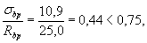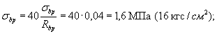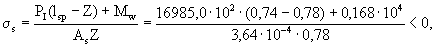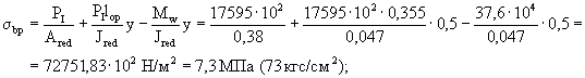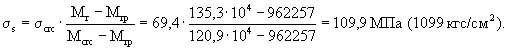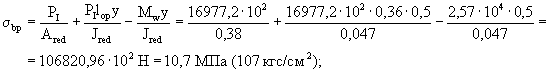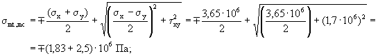 σmt = -1,83 · 106 + 2,5 · 106 = 0,67 МПа (6,7 кгс/см2); σmc = 1,83 · 106 + 2,5 · 106 = 4,33 МПа (43,3 кгс/см2);