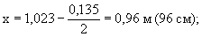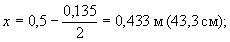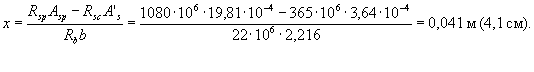PII = 0,9 · 154421 · 102 = 13879,9 · 102 H; σx = PII / Ared = 13879,9 · 102 / 0,38 = 3,65 МПа (36,5 кгс/см2). Расстояние от рассматриваемого сечения до опорной реакции равно: