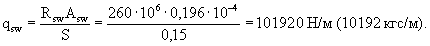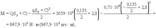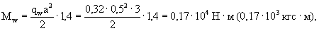 Рассматриваем сечение на расстоянии, равном lp = 1,023 м (102,3 см). Mw = qw l x / 2 - qw x2 / 2 = 0,32 · 17,7 · 0,96 / 2 - 0,32 · 0,962 / 2 = 2,57 · 104 Нм (2,57 · 103 кгс · м);
