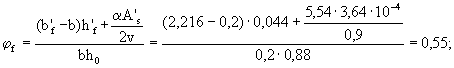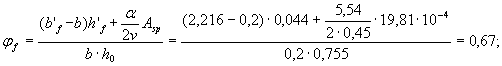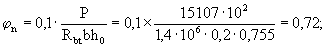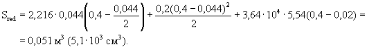 Wintred = Jred / y = 0,047 / 0,5 = 0,094 м3 (94 · 103 см3); φ = 1,6 - σb / Rpbser = 1,6 - 7,0 / 18,5 = 1,22, но не более 1. Принимаем φ = 1,0;