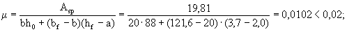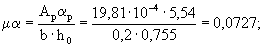 μα = (As αs) / (b - h0) = (3,64 · 5,23) / (20 · 88) = 0,01082;