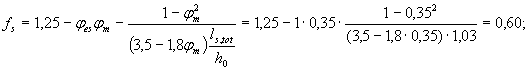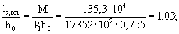 λ = φf (1 - h′f / 2 h0) = 0,57 (1 - 0,044 / 2 · 0,88) = 0,56; lsp = lop + h0 - y0 = 0,36 + 0,88 - 0,5 = 0,74 м (74 см); Ms = PI lop + Mw = 16985 · 102 · 0,74 + 0,168 · 104 = 125,86 · 104 Н · м (125,83 · 103 кгс · м); ls,tot / h0 = Ms / PI h0 = 125,86 · 104 / (16985,0 · 102 · 0,88) = 0,84;