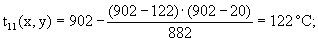 tc = 902 °С. Вычисляем интегральную температуру нагрева каждого арматурного каната соответственно расположению их по сечению и величинам защитных слоев y и x по формуле (12). Подставляя вычисленные выше значения температур, получим: