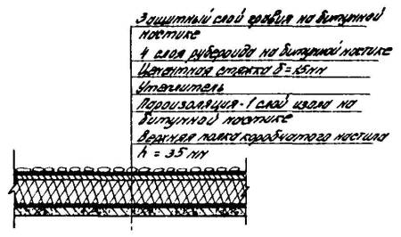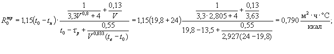 MR(τ1) = 186 · 104 Н · м > MHmax = 153,4 · 104 Н · м, т.е. предел огнестойкости коробчатого настила не менее 0,75 ч. Теплотехнический расчет покрытия с коробчатыми настиламиРасчет покрытия производим на примере прядильного цеха главного производственного корпуса хлопкопрядильной фабрики в г. Долине Ивано-Франковской области для зон «а» и «б» (рис. 25). Состав покрытия, с коробчатыми настилами приведен на рис. 26. Конечная задача расчета - определение толщины утеплителя. Величину тепловой инерции определяем по СНиП II-3-79** (п. 2.4) в зависимости от конструктивного состава покрытия. Рис. 25. Зоны покрытия с коробчатыми настилами Рис. 26. Состав покрытия с коробчатыми настилами По СНиП II-3-79** (табл. 5) и СНиП 2.01.01-82 определяется расчетная зимняя температура, принимаемая равной средней температуре наиболее холодных суток. В нашем примере имеют место следующие характеристики: а) расчетная температура наружного воздуха tн = -24 °С; б) расчетная температура внутреннего воздуха в прядильном цехе tв = 24 °С; в) температура воздуха в начале воздуховода (коробчатого настила) t0 = 19,8 °С; г) температура точки росы воздуха в коробчатом настиле τр = 13,5 °С; д) относительная влажность воздуха в коробчатом настиле φ = 78 %; е) нагрузка на эжекторный воздухораспределитель ВПЭП N = 9790 м3/ч. Определяем последовательно скорость воздуха в коробчатом настиле и требуемое сопротивление теплопередаче покрытия для зоны «а». V = N / 2700 = 9790 / 2700 = 3,63 м/с;