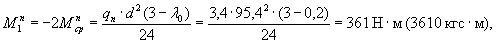 При ширине полосы настила вдоль пролета lx = 100 см моменты от постоянной (рис. 2, г) нагрузки составляют:
