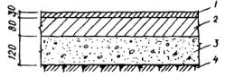 Конструкция пола 1 - покрытие пола; 2 - теплоизоляционный слой; 3 - подстилающий слой с проливкой битумом; 4 - профилированный и утрамбованный грунт основания. Размеры даны в мм. Приложение 2РЕКОМЕНДУЕМЫЕ СОСТАВЫ ЛЕГКИХ БЕТОНОВ, МОДИФИЦИРОВАННЫХ ПОЛИМЕРАМИ, ДЛЯ ПОЛОВ ЖИВОТНОВОДЧЕСКИХ ЗДАНИЙ