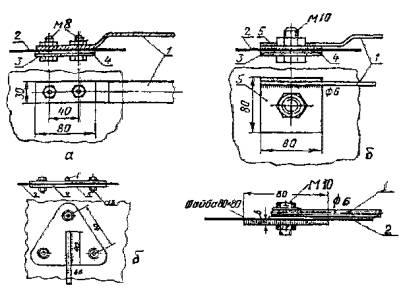 В глинистой или черноземной почве (ρ = 100 Ом · м) вертикальный стержень длиной 2,5 - 3 м имеет сопротивление приблизительно 30 Ом, а горизонтальная полоса длинной 5 м, уложенная на глубине 0,5 - 0,7 м, - приблизительно 25 Ом. Примерные сопротивления заземления, получаемые в разных грунтах с помощью одиночных электродов, приведены в табл. 2. Таблица 2 Примерные сопротивления одиночных заземляющих электродов в разных грунтах