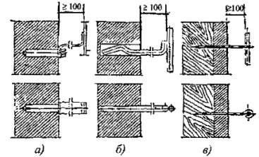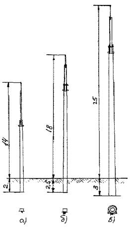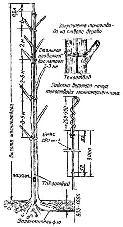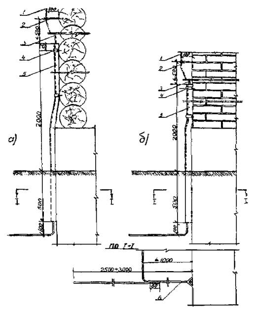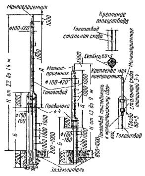 Рисунок 3.8. Стержневые отдельно стоящие молниеотводы на деревянной опоре (размеры в мм)