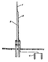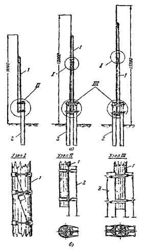 1 - деревянная стойка; 2 - железобетонный пасынок.