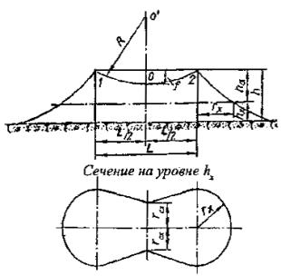 соотношения rсх1 = 0,45´ha = 0,45´6 = 2,7 м или 2rсх1 = 2´rсх1 = 2´2,7 = 5,4 Дом имеет ширину 18,0 м, следовательно, молниеотводы высотой 15 м недостаточны для его защиты. Задаемся молниеотводом большей высоты. Принимаем h = 20 м и аналогично определяем для hx1 = 9 м, 2rсх1 = 18,26 м; hx2 = 12 м, 2rсх2 = 10,4 м. Радиус внешней зоны защиты для двойного молниеотвода определяем, как и для одиночного, по формуле: