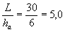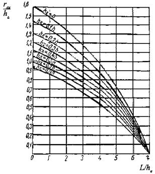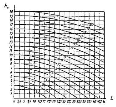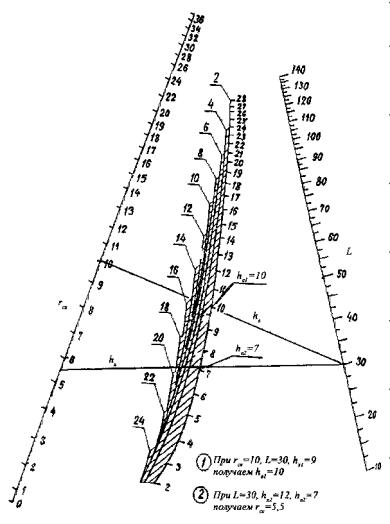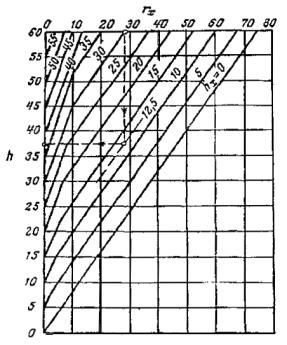 горизонтальной шкале L отыскиваем деление 5,0 и из этой точки восстанавливаем перпендикуляр до пересечения с кривой hх = 0,6. Из точки пересечения