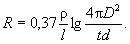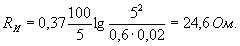 Сделаем более точный расчет того же заземлителя. Сопротивление одного стержня при переменном токе по формуле (23)