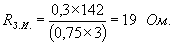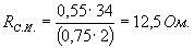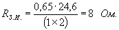 Для двух стержней импульсный коэффициент αИ по табл. 3 составляет 0,55, а коэффициент использования ηИ равен 0,75 (см. выше). Импульсное сопротивление двух стержней находим из формулы (27).