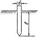 В случае, если ни конструктивно, ни снижением величины сопротивления заземления не удается обеспечить требуемую электрическую прочность между токоотводом и заземленными частями внутри здания, необходимо последние присоединить вблизи мест сближения с молниезащитным устройством (токоотводом), а в нижней части - с заземлителем. Электропроводка при этом должна быть проложена в металлических трубах, которые также внизу присоединяются к заземлителю, а в местах сближения и к молниезащитному устройству. Электрическая емкость между трубой и лежащей внутри нее электропроводкой достаточно велика, а, как известно, емкостное сопротивление обратно пропорционально величине емкости и частоте тока. Поэтому при прохождении тока молнии, эквивалентного току весьма высокой частоты, емкостное сопротивление между проводкой и трубой ничтожно, и, таким образом, оказывается, что проводка и труба практически имеют между собой электрическое соединение. Этот эффект спасает изоляцию электропроводки от пробоев. ГЛАВА 4. ЗАЗЕМЛЕНИЕ МОЛНИЕОТВОДОВ4.1. Общие положенияВеличина сопротивления заземлителя молниеотводов, если вблизи них во время грозы могут находиться люди, не должна превышать 10 Ом. Если же во время грозы вблизи молниезащитного устройства пребывание людей невозможно, то величина сопротивления заземлителя может быть не более 40 Ом*. * Такое сопротивление допускается только для изолированных систем молниезащиты, особенно при использовании искусственных заземлителей молниеотводов, устанавливаемых на естественных несущих конструкциях (деревья, башни, трубы и т.п.), удаленных от домов на расстояние не менее 10 м. Заземление молниеотводов выполняется с помощью забитых в землю вертикальных стальных стержней, уголков или труб, которые объединяются стальной полосой или прутком. Сопротивление одного вертикально забитого заземляющего электрода R может быть рассчитано по формуле, Ом: где ρ - удельное сопротивление грунта, Ом · м; l - длина электрода, м; d - внешний диаметр для стержней и труб (или ширина полки уголка), м. Применяются также заземлители, выполненные из стали круглого сечения или из полосовой стали, которые закладываются горизонтально на глубине 0,5 - 0,7 м. Сопротивление горизонтального заземлителя в виде луча рассчитывается по формуле, Ом: где l - длина электрода, м; t - глубина заложения, м; d - диаметр проводника круглого сечения или половина ширины стальной полосы, м. Сопротивление горизонтального заземлителя в виде кольца диаметром D из круглой стали диаметром d (или полосы шириной 2d), уложенного на глубине t (t < D/2), равно, Ом:
