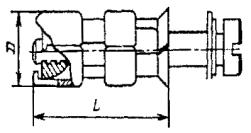 7.61. Для заземления корпусов изделий и подсоединения заземляющих проводников применяются заземляющие зажимы следующих типов: ЗШ - зажим со шпилькой (рис 7.4); ЗБ - зажим с болтом (рис. 7.5); ЗВ - зажим с винтом (рис. 7.6); ЗВП - зажим с винтом, припаянным к подпорке, для заземления оболочки и брони кабелей (рис. 7.7); ЗШ2П - зажим с двумя шпильками и пластинами (рис. 7.8); ЗШ2С - зажим с двумя шпильками и скобой (рис. 7.9); ЗБХ - зажим с болтом с хомутом (рис. 7.10); ЗБ2 - зажим с двумя болтами (рис 7.11). Рис. 7.2. Дюбель с распорной гайкой Таблица 7.9. Дюбели с распорной гайкой (рис. 7.2)