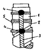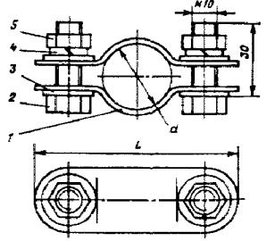 Примеры установки зажимов показаны на рис. 7.12. 7.62. Проходы через стены должны выполняться в открытых проемах, трубах, а проходы через перекрытия - в отрезках стальных или кассетах пластмассовых труб. 7.63. Каждая заземляемая часть электроустановки должна быть присоединена к магистрали заземления или зануления при помощи отдельного ответвления. Способ присоединения заземляющих проводников к отдельным аппаратам выбирается в зависимости от основания, на котором крепится аппарат. 7.64. При установке аппаратов на металлических конструкциях заземляющие проводники присоединяются сваркой к конструкции, а также способами, приведенными в табл. 7.14. 7.65. Способы соединения и присоединения заземляющих и нулевых защитных проводников приводятся в табл. 7.12. 7.66. Соединение электрооборудования, подвергающегося частому демонтажу, вибрации или установленного на движущихся частях, выполняется с помощью гибких заземляющих или нулевых защитных проводников. Рис. 7.4. Зажим типа ЗШ: 1 - шпилька; 2 - гайка; 3 - шайба пружинная; 4 - шайба Рис. 7.5. Зажим типа ЗБ: 1 - болт; 2 - шайба пружинная; 3 - шайба Рис. 7.6. Зажим типа ЗВ: 1 - винт; 2 - шайба пружинная; 3 - шайба Рис. 7.7. Зажим типа ЗВП: 1 - винт; 2 - гайка или гайка-барашек; 3 - шайба пружинная; 4 - шайба; 5 - скоба Таблица 7.12. Соединения и присоединения заземляющих и нулевых защитных проводников