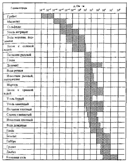 * Для плоской ленты шириной b следует принимать d = b/2 Таблица 8.5. Удельное электрическое сопротивление горных пород ρ