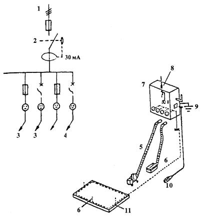 Внутреннее электрооборудование10.11.19. В зданиях при трехпроводной сети (см. п. 10.11.16.) должны устанавливаться штепсельные розетки на ток не менее 16 А с защитным контактом. Штепсельные розетки, устанавливаемые в квартирах, жилых комнатах общежитий, а также в помещениях для пребывания детей в детских учреждениях (садах, яслях, школах и т.п.), должны иметь защитное устройство, автоматически закрывающее гнезда штепсельной розетки при вынутой вилке. Защитные меры безопасности10.11.20. Заземление и защитные меры безопасности электроустановок зданий должны выполняться в соответствии с требованиями главы 5 и дополнительными требованиями, приведенными в данном разделе. 10.11.21. Во всех помещениях необходимо присоединять открытые проводящие части светильников общего освещения и стационарных электроприемников (электрических плит, кипятильников, бытовых кондиционеров, электрополотенец и т.п.) к нулевому защитному проводнику. 10.11.22. В помещениях зданий металлические корпуса однофазных переносных электроприборов и настольных средств оргтехники класса I по ГОСТ 12.2.007.0-75 «ССБТ. Изделия электротехнические. Общие требования безопасности» должны присоединяться к нулевому защитному проводнику трехпроводной групповой линии (см. п. 10.11.16.). К нулевому защитному проводнику должны присоединяться металлические каркасы перегородок, дверей и рам, используемых для прокладки кабелей. 10.11.23. Применение подвесных светильников, не оснащенных зажимами для присоединения к нулевому защитному проводнику, не допускается. 10.11.24. В групповой сети, питающей штепсельные розетки для переносных электрических приборов должна быть обеспечена дополнительная защита при случайном непреднамеренном прикосновении к опасным токоведущим частям посредством устройства защитного отключения (УЗО-Д) с номинальным отключающим дифференциальным током (током уставки) не более 30 мА. В качестве УЗО-Д могут быть применены как УЗО-Д, не имеющие источника питания, зависимого от напряжения защищаемой сети («независимые» УЗО-Д), так и УЗО-Д, имеющие такой источник («зависимые» УЗО-Д), в равной мере успешно обеспечивающие надлежащую защиту при случайном непреднамеренном прямом прикосновении. 10.11.25. В сетях с номинальным напряжением 220 В защита при косвенном прикосновении должна быть обеспечена посредством автоматического отключения за время не более 0,4 с. В качестве автоматического выключателя может быть применен дифференциальный автоматический выключатель с номинальным отключающим дифференциальным током не более 30 мА. В качестве дифференциальных автоматических выключателей должны быть использованы дифференциальные выключатели, не имеющие источника питания, зависимого от напряжения защищаемой сети («независимые» дифференциальные выключатели). 10.11.26. При установке УЗО последовательно должны выполняться требования селективности. При двух- и многоступенчатой схемах УЗО, расположенное ближе к источнику питания, должно иметь уставку и время срабатывания не менее чем в 3 раза большие, чем у УЗО, расположенного ближе к потребителю. 10.11.27. В зоне действия УЗО нулевой рабочий проводник не должен иметь соединений с заземленными элементами и с нулевым защитным проводником. 10.11.28. Во всех случаях применения УЗО должно обеспечивать надежную коммутацию цепей нагрузки с учетом возможных п
