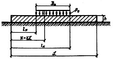 где Е0 - модуль упругости основания, МПа (табл.3 данного приложения); Еп - модуль упругости плиты, МПа, для бетона Еп =20000 МПа; h - толщина плиты, м; Е0 - модуль упругости основания, МПа (табл.3 данного приложения); Е0 - модуль упругости основания, МПа (табл.3 данного приложения); Значение β определяется по формуле