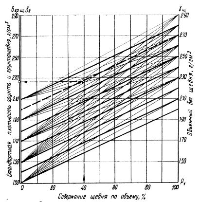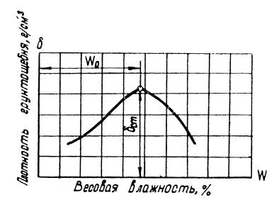 Точка перегиба на этом графике и определяет величину стандартной плотности и оптимальной влажности грунтощебня данного состава (рис. 6). Такие графики строят каждый раз, когда приступают к работе с новыми материалами, так как величина оптимальной влажности и стандартной плотности грунтощебня зависит от гранулометрического состава грунта, от материала исходной горной породы, от количества щебня и др. Для контрольных постов и построечных лабораторий такой способ является довольно громоздким. С некоторым приближением для этих целей можно рекомендовать расчетный способ определения стандартной плотности и оптимальной влажности грунтощебня или же определять эти величины по номограммам.