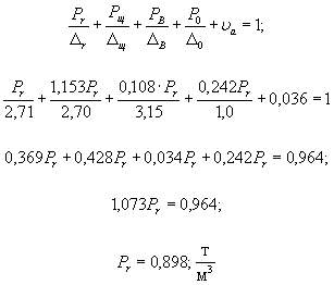 Состав конгломератных материалов, к которым относится и грунтощебень, обычно выражают в весовых единицах на единицу объема материала, например в г/см3, т/м3. Если мы обозначим через РВ, Р0, РГ и Рщ соответственно вес вяжущих веществ, воды, грунтовых и щебеночных частиц в единице объема грунтощебня, а через Дв, Д0, Дг и Дщ - соответственно удельный вес вяжущих, воды, грунтовых и щебеночных частиц, то уравнение (7) можно записать в таком виде: