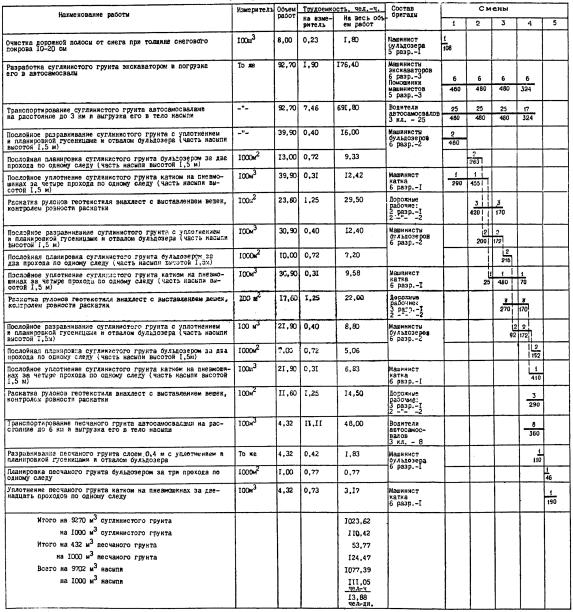 Таблица 2 2.6. Калькуляция затрат труда на возведение насыпи из связного грунта повышенной влажности с дренирующими слоями из геотекстиля