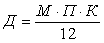 6.3 Формула для расчета долговечности (условного срока службы в годах) отделочных материалов «Д» после появления признаков разрушения или потери внешнего вида:
