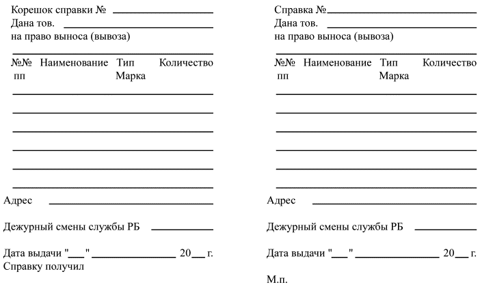 Приложение 6Форма справки на право выноса (вывоза)