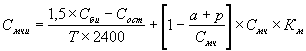 С мчи - стоимость машино-часа эксплуатации импортной машины; С би - балансовая стоимость импортной машины в рублевом эквиваленте; 1,5 - коэффициент учета импортных запасных частей на амортизационный срок службы с учетом их установки; С ост - остаточная стоимость импортной машины после её полной амортизации; Т - амортизационный срок службы импортной машины; 2400 - нормативное число машино-часов работы импортной машины в год; а - стоимость амортизации в стоимости машино-часа отечественного аналога; р - стоимость ремонта в стоимости машино-часа отечественного аналога; С мч - стоимость машино-часа отечественного аналога; K м - коэффициент приведения мощности аналога отечественной машины ( М о ) к мощности импортной машины ( М имп ), где