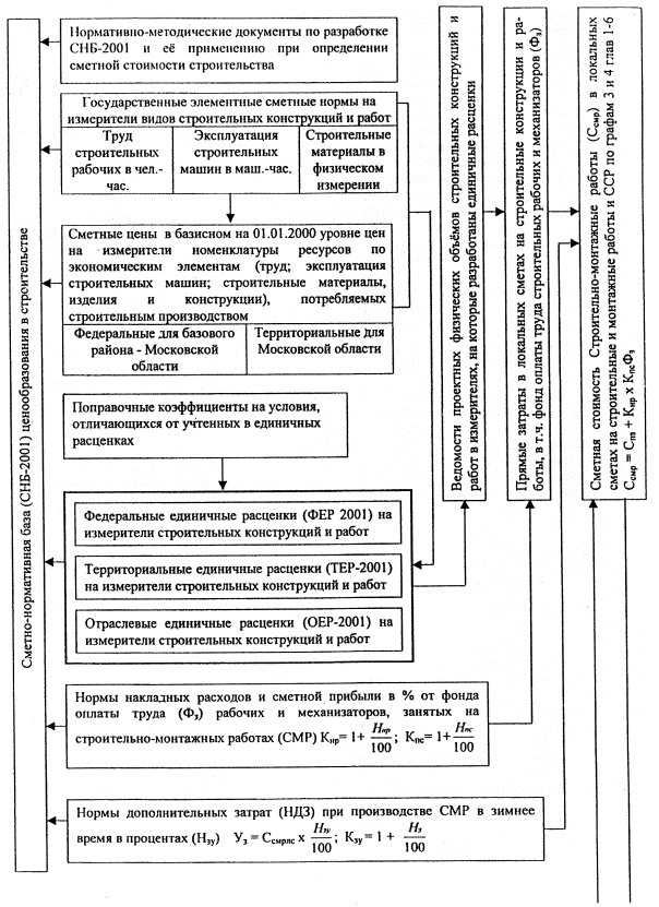 РАССМОТРЕНА и УТВЕРЖДЕНА Московской областной комиссией по индексации цен и ценообразованию в строительстве Московской области (Протокол № 11 от 17 ноября 2004 года), образованной Правительством Московской области (Постановления от 10.06.2002 №229/20 и от 26.08.2003 №507/31). СОДЕРЖАНИЕ УтвержденаМосковской областной комиссией по индексации цен и ценообразованию в строительстве (Протокол №11 от 17.11.2004) МЕТОДИКА 1. Общие положения1.1. Настоящая Методика разработана во исполнение распоряжения Министерства строительного комплекса Московской области (Минмособлстроя) от 08.08.2003 № 40 «О переходе на новую сметно-нормативную базу 2001 года (СНБ-2001) строительного комплекса Московской области» с учетом общих принципиальных положений «Методики определения стоимости строительной продукции на территории Российской Федерации» МДС 81-35.2004, утвержденной Постановлением Госстроя России от 05.03.2004 № 15/1 (далее - Методика РФ). Методика разработана на основе действующих федеральных нормативных документов и им не противоречит. 1.2. В данной Методике устанавливается состав и формы сметной документации, порядок её разработки, сметно-нормативная база для определения показателей сметной стоимости в уровне цен на 01.01.2000 в составе сметной документации с учетом региональных особенностей Московской области. 1.3. Методика предназначена для определения стоимости строительства новых, реконструкции, капитального ремонта, расширения и технического перевооружения действующих предприятий, зданий и сооружений на территории Московской области по новой сметно-нормативной базе СНБ-2001. Указанные выше понятия согласно МДС 81-35.2004 означают: 1.3.1. Новое строительство - это создание новых предприятий, зданий и сооружений, их филиалов с комплексом объектов основного, подсобного и обслуживающего назначения, как правило, на свободных территориях в целях ввода в эксплуатацию на самостоятельном балансе новых мощностей. 1.3.2. Реконструкция - это переустройство (как правило без расширения) существующих здании, сооружений, цехов предприятий и объектов основного, подсобного и обслуживающего назначения по комплексному проекту модернизации в целях повышения технико-экономического уровня, улучшения качества и изменения номенклатуры продукции и услуг, улучшения условий труда и охраны окружающей среды. 1.3.3. Расширение действующих предприятий - это создание дополнительных производств (строительство отдельных новых и расширение существующих цехов и объектов основного, подсобного и обслуживающего назначения), филиалов на территории действующего предприятия или примыкающих к ней площадках в целях ввода в эксплуатацию без перевода на самостоятельный баланс дополнительных или новых мощностей. 1.3.4. Техническое перевооружение действующих предприятий - это комплекс мероприятий по повышению технико-экономического уровня отдельных производств, цехов и участков на основе внедрения передовой технологии и новой техники, механизации и автоматизации производства, модернизации и замены устаревшего и физически изношенного оборудования новым, более производительным, а также по совершенствованию общезаводского хозяйства и вспомогательных служб. 1.3.5. Капитальный ремонт зданий, сооружений, наружных инженерных сетей (водопровода, канализации, теплоснабжения, газоснабжения, электроснабжения, связи