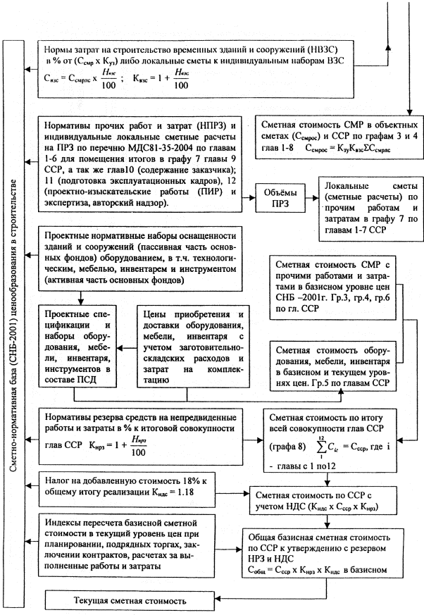 3.2.1. Локальные сметы и локальные сметные расчеты являются исходными документам» для составления объектных смет и сводных сметных расчетов (ССР). 3.2.2. Локальные сметы по видам работ и затрат, являясь первичными сметными документами, разрабатываются по Сборникам единичных расценок ФЕР-2001, ТЕР-2001, ОЕР-2001, а их суммарные итоги включаются в соответствующие объектные сметы и главы сводных сметных расчетов. 3.2.3. Локальные сметные расчеты (ЛСР) разрабатываются в случаях, указанных в пункте 2.3.2 данной Методики. Эти расчеты могут разрабатываться по объектам-аналогам (объектам-представителям) и укрупненным показателям базисной стоимости (УПБС), устанавливаемым исходя из ранее утвержденной ПСД. В случае применения объектов-аналогов и УПБС в уровне цен 1984 года для перехода в цены на 01.01.2000 следует руководствоваться «Пособием по индексации базисной (1984г.) стоимости объектов-аналогов и их применению в Московской области в сметах и сметных расчетах в уровне цен 2000 года» ГУ МО «Мособлгосэкспертиза» (издание 2004 г. с изменениями и дополнениями). 3.2.4. Локальные сметы (локальные сметные расчеты) составляются на основе физических объемов работ, а также по спецификациям на оборудование, устанавливаемым при разработке рабочей документации: а) по зданиям и сооружениям: на строительные работы, специальные строительные работы, внутренние санитарно-технические работы, внутреннее электроосвещение, электросиловые установки, на монтаж и приобретение технологического и других видов оборудования, контрольно-измерительных приборов (КИП) и автоматики, слаботочных устройств (связь, сигнализация и т.п.), приобретение оборудования, приспособлений, мебели, инвентаря и др.; б) по общеплощадочным работам: на вертикальную планировку, устройство инженерных сетей, путей и дорог, благоустройство территории, малые архитектурные формы и др. 3.2.6. Стоимость оборудования, мебели и инвентаря включается в локальные сметные расчеты (сметы) согласно пункту 3.2.11 настоящей Методики. 3.2.7. В случае проектирования сложных зданий и сооружений или осуществлении разработки технической документации для строительства несколькими проектными организациями, а также при формировании сметной стоимости по пусковым комплексам допускается составление на один и тот же вид работ двух и более локальных смет (локальных сметных расчетов). 3.2.8. Данные локальных смет (локальных сметных расчетов) группируются в объектных сметах (сметных расчетах) по конструктивным частям здания (сооружения), комплексам работ и устройств, которые распределяются по главам ССР. Порядок группировки должен соответствовать технологической последовательности работ и учитывать специфические особенности отдельных видов строительства. 3.2.9. В стоимость, определяемую локальными сметами (сметными расчетами), входят прямые затраты, накладные расходы и сметная прибыль. Прямые затраты учитывают стоимость оплаты труда рабочих, материалов, изделий, конструкций и эксплуатации строительных машин. Накладные расходы учитывают затраты строительно-монтажных организаций, связанные с созданием общих условий производства, его обслуживанием, организацией и управлением. Сметная прибыль - сумма средств, необходимых для покрытия отдельных (общих) расходов строительно-монтажных организаций на развитие производства, социальной с