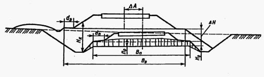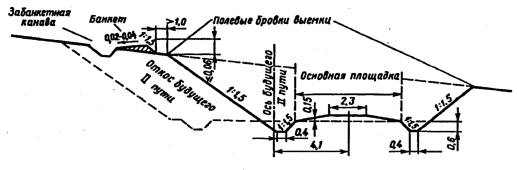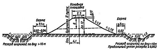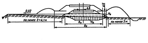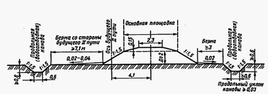 Размеры основной площадки земляного полотна (рис. П.3.1, П.3.2) принимаются для линий I-II категорий - 7,6 м; III категории - 7,3 м; IV категории - 7,1 м.