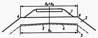 смещение бровки земляного полотна; В3 - фактическая ширина основной площадки;