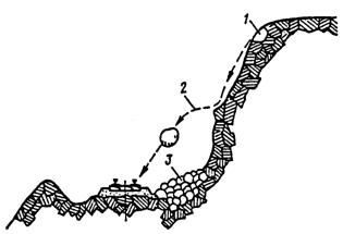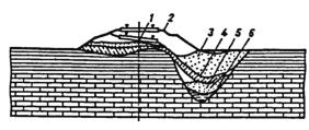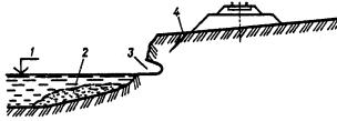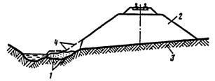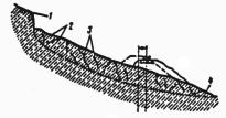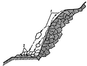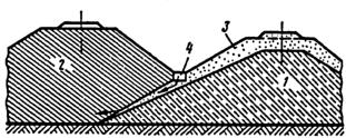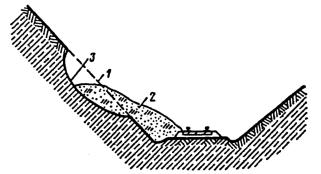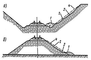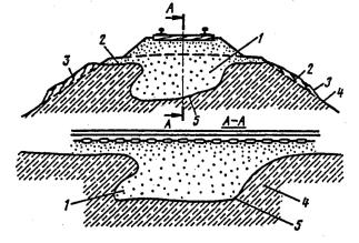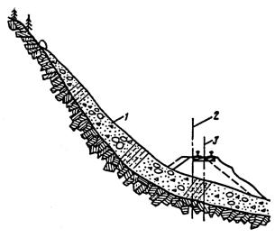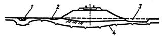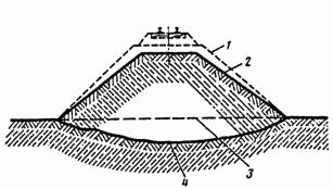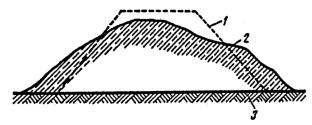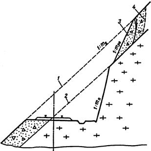 материал; 3 - современное очертание откоса выемки; 4 - построечное положение
