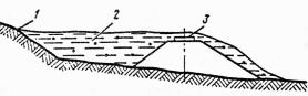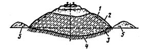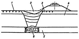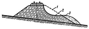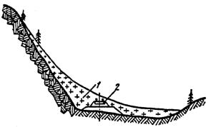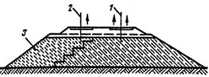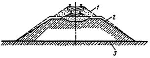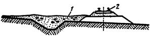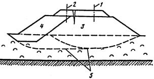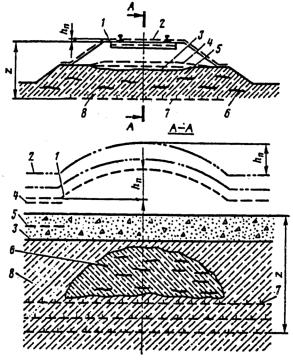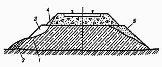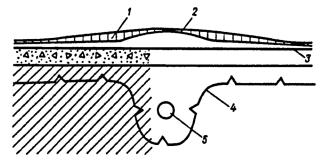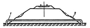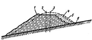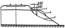 откоса выемки; 5 - слой, компенсирующий оседание построечной основной площадки;