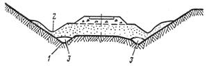 «ТРАНСПОРТ» МОСКВА 2000 СОДЕРЖАНИЕ I. ОБЩИЕ ПОЛОЖЕНИЯ1. Настоящая Инструкция регламентирует порядок и условия содержания земляного полотна, водоотводных, укрепительных и защитных сооружений сети железных дорог для обеспечения бесперебойного и безопасного движения поездов с установленными скоростями. Исправное состояние земляного полотна и его сооружений обеспечивается соответствием его конструкций действующим нагрузкам, выполнением планово-предупредительных ремонтов и основано на непрерывном текущем содержании и периодическом проведении капитального ремонта. 2. Главной задачей содержания земляного полотна является обеспечение исправности состояния всех его элементов, предупреждение появления неисправностей, своевременное их устранение, а также ликвидация причин, вызывающих появление неисправностей. 3. Земляное полотно железнодорожного пути (далее земляное полотно) служит основанием для верхнего строения пути и состоит из комплекса инженерных сооружений, рассчитанного на длительные сроки службы. В комплекс инженерных сооружений земляного полотна (рис.) входят: насыпи, выемки, полунасыпи, полувыемки, полунасыпи-полувыемки и нулевые места. К нулевым местам относятся переходные участки земляного полотна от полунасыпей или насыпей с высотой одного из откосов до 1 м к выемкам или полувыемкам с высотой их откосов до 1 м;