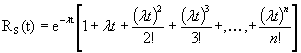 Представленная структурная схема достаточно простая. Система находится в рабочем состоянии, если одновременно работают элементы В1 и С1 или А и С1, или А и С2, или В2 и С2. Работы элементов В1 и С2 или В2 и С2 недостаточно для работы системы. Рисунок 8 можно интерпретировать как систему подачи топлива на двигатели легкого самолета. Элемент В1 представляет поставку топлива на двигатель левого борта С1, элемент В2 - поставку топлива на двигатель правого борта С2, а элемент А - резервную поставку на оба двигателя. Системное определение отказа - должны отказать оба двигателя самолета. Необходимо заметить, что на всех приведенных на рисунках 1-8 структурных схемах ни один блок не появляется более одного раза. Процедуры построения формул для определения вероятности безотказной работы структурных схем таких типов приведены в разделе 8. 7.2 Оценка вероятности безотказной работыВероятность безотказной работы (далее - ВБР) системы RS(t) - это вероятность того, что система может исполнять требуемую функцию в данных условиях для данного интервала времени (0, t). В общем случае ВБР определяют по формуле