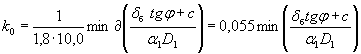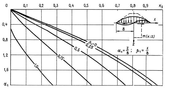 ξ - 0,333 - коэффициент бокового давления грунта насыпи; x - координаты точек в расчетной плоскости, отсчитываемые от оси насыпи. Если окажется, что k > 1, в расчет вводится k = 1, а В = 1,5mН; координата х отсчитывается от условной оси, отстоящей от подошвы откоса на расстоянии 1,5mН.