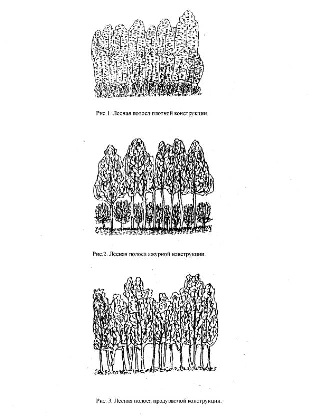 Рис. 11 Размещение древесно-кустарниковых кулис при средней заносимости до 400 м3/п.м