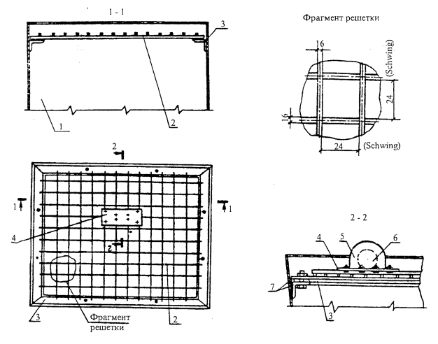 1 - бункер автобетононасоса; 2 - откидная вибрирующая решетка; 3 - обвязка решетки; 4 - металлический лист под вибратор; 5 - кожух вибратора; 6 - вибратор; 7 - резиновые прокладки. Рисунок 14 - Схема установки откидной решетки бункера автобетононасоса 7.8. При перекачке приемная воронка автобетононасоса должна быть заполнена бетонной смесью, это предотвращает попадание воздуха в рабочую камеру насоса. 7.9. В течение смены должна быть обеспечена непрерывная перекачка бетонной смеси. Случайные или организационные перерывы в работе автобетононасоса (например, демонтаж звена трубопровода) не должны превышать 15-20 мин. При более продолжительных перерывах, приближающихся к срокам схватывания бетона (определяются строительной лабораторией), бетонную смесь следует прокачивать по замкнутому контуру системы бетононасос - бетоновод на стреле. При этом гибкий шланг на конце бетоновода следует крепить к приемному бункеру автобетононасоса. В случае прокачивания бетонной смеси по системе бетононасос - бетоновод на стреле - бетоновод из стальных труб насос и бетоновод после перекачки необходимо освободить от бетонной смеси и промыть всю систему. 7.10. Бетонная смесь по бетоноводу подается непосредственно к месту укладки. Высота свободного сбрасывания бетонной смеси при бетонировании конструкций не должна превышать величин, указанных в таблице 2 СНиПа 3.03.01-87 «Несущие и ограждающие конструкции». 7.11 Бесперебойная работа автобетононасоса предотвращает причины, вызывающие образование пробок в бетоноводе. Пробки образуются, если: - неправильно подобран состав бетонной смеси, при котором не обеспечивается ее удобоперекачиваемость; - применена расслоившаяся бетонная смесь; - увеличено сопротивление движению смеси по бетоноводу сверх расчетного за счет вмятин на трубопроводе или остатков бетона в нем из-за плохой промывки или утечки цементного раствора в местах стыковки труб бетоновода; - создалось избыточное содержание химических добавок в бетонной смеси; - применен быстросхватывающийся цемент; - появляется вода в изгибах или на низких участках бетоновода; - нагревается бетоновод в жаркую погоду. 7.12. Образование пробок в бетоноводе нарушает процесс бетонирования конструкций, поэтому персонал, обслуживающий комплект машин, должен уметь быстро обнаружить и ликвидировать их. Основным приемом удаления пробок является переключение бетононасоса на обратный ход. Образование пробок характеризуется следующими признаками: - золотниковая камера подвижной трубы неточно устанавливает последовательные контакты - этот признак указывает на возникновение пробки в кожухе золотниковой камеры бетонораспределителя. Если пробку из рабочего цилиндра не удается удалить путем обратного хода, то нужно откинуть кожух золотниковой камеры и удалить пробку. Пробку следует удалять, обесточив насос и выключив двигатель; - внезапная остановка автобетононасоса - это признак возникновения пробки в начале бетоновода. Автобетононасос следует немедленно отключить из сети, снять первое звено бетоновода, удалить уплотнившуюся смесь, а звено промыть; - постепенное повышение давления в бетоноводе с одновременным снижением производительности насоса до нуля - этот признак свидетельствует о возникновении пробки в конце бетоновода. Отсоединив и очистив концевые звенья бет