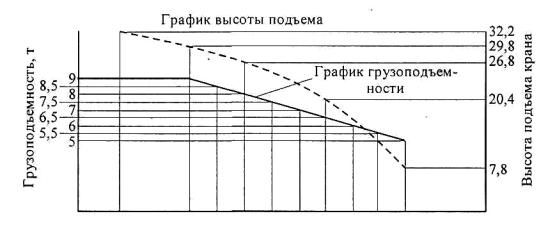 Рисунок 4 - График грузоподъемности и высоты подъема клюка крана КБ-404м