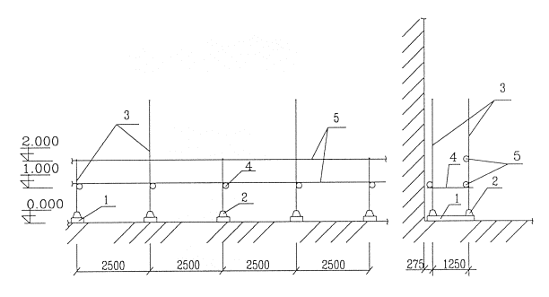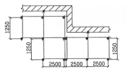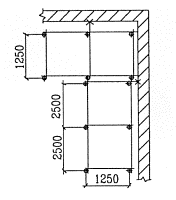 рис.2 Схема установки элементов лесов 1) Схема установки подкладок (I ярус)