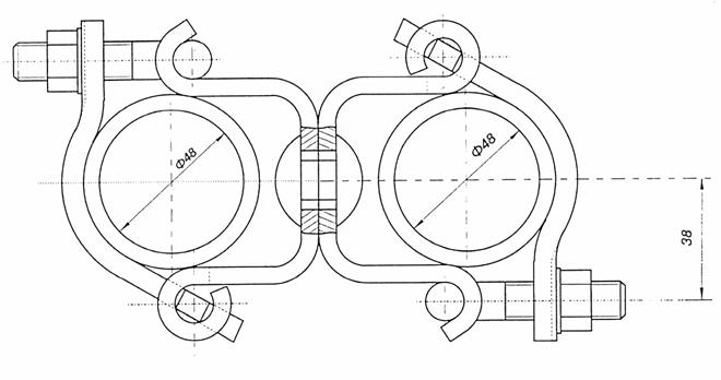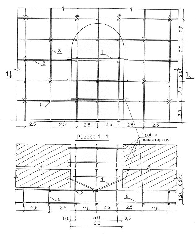 рис. 22. Типовое крепление лесов инвентарными пробками