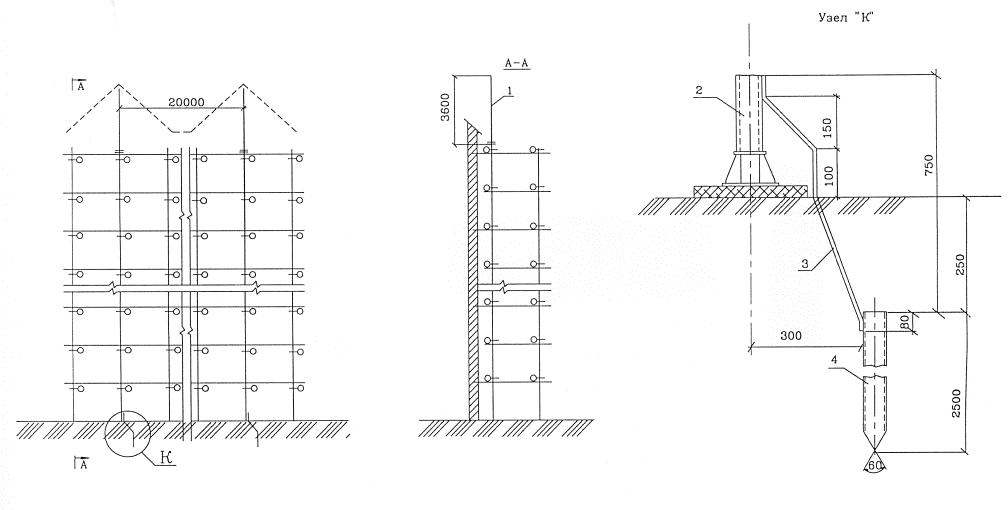 3) Схема установки стоек внутреннего и наружного ряда (I ярус)