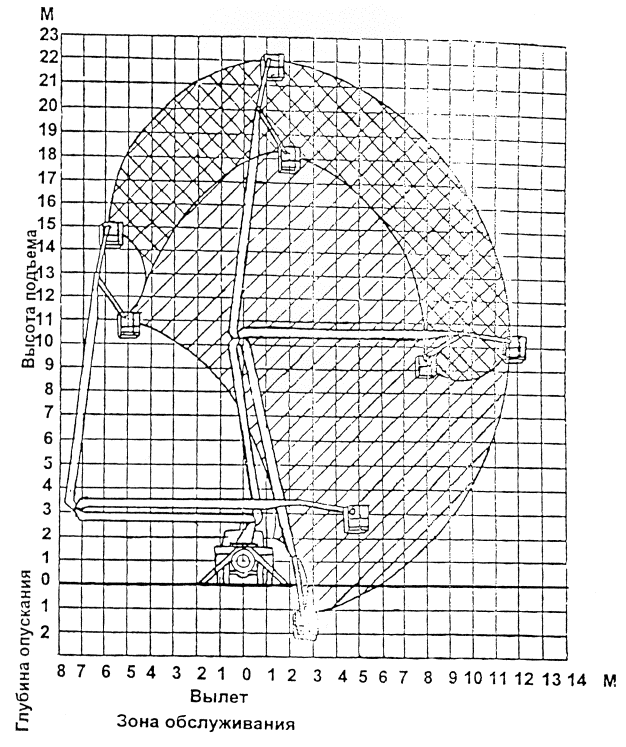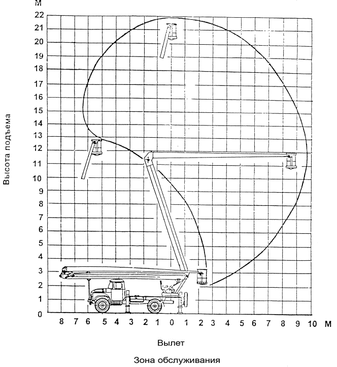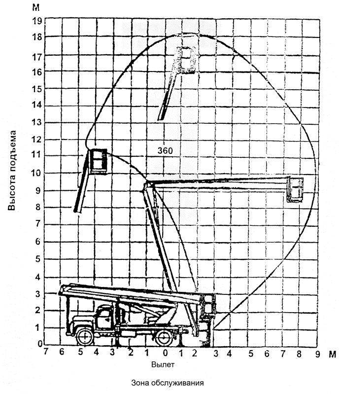Применение подъемников должно производится в соответствии с "Правилами устройства и безопасной эксплуатации подъемника" ПБ 10-11-92, СНиП III-4-80* "Техника безопасности в строительстве", "Указаний по установке и безопасной эксплуатации грузоподъемных кранов и строительных подъемников при разработке проектов производства работ" (ОАО ПКТИпромстрой, 1995). Общие технические требования, правила эксплуатации подъемников и производства работ приводятся в "Методических указаниях по применению автомобильных гидроподъемников при производстве работ по отделке фасадов при строительстве, реконструкции и ремонте зданий"(ОАО ПКТИпромстрой, 1998). 2.19. В строительстве применяются различные типы подъемников, многие из которых по своим техническим характеристикам могут использоваться при отделке фасадов зданий (таблица 3). Важным показателем является рабочая зона обслуживания подъемником, которая зависит от высоты подъема люльки и ее вылета (рис. 12-20). Основные технические характеристики гидроподъемников Таблица 3