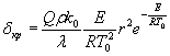 шламовой муки толщиной Исходными данными для расчета критической температуры отложений на нагретой поверхности оборудования являются: • температура среды, в которой образуются отложения, Т0=300 К; • толщина отложений h= • коэффициент теплопроводности материала l=0,055 Вт/(м × К); • теплоемкость исследуемого материала с=1550 Дж/(кг × К); • энергия активации реакции окисления Е =66 597 Дж/моль; • удельное тепловыделение Q=349 637 Дж/кг; • предэкспоненциальный множитель Qk0/l=2,55