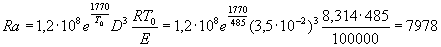 5. По уравнениям (1) и (2) для полученного размера вычислим число Рэлея: